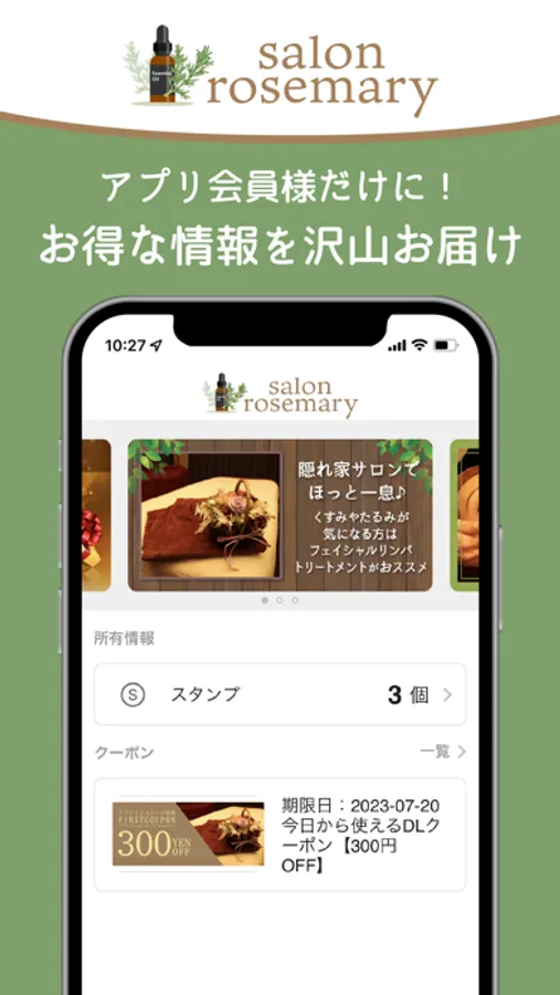 サロンで使用できるお得なクーポンがアプリを通して発行されご利用いただけます。