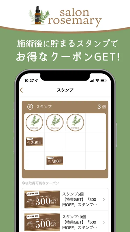 ご来店スタンプをためるとお得なクーポンが発行されます(ご利用条件がある場合がございます)