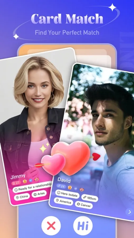 -Card Match and Random Party can help you start conversations with strangers to make friends.