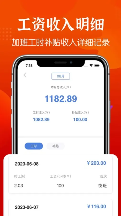 打工人加班必备记账工具,适合兼职以及全职加班打卡记录的人群,只需要输入小时工资,即可一键计算加班时长以及收入,当月也有明细收入查询,数据安全可靠,简单上手,养成每天加班打卡记账好习惯。