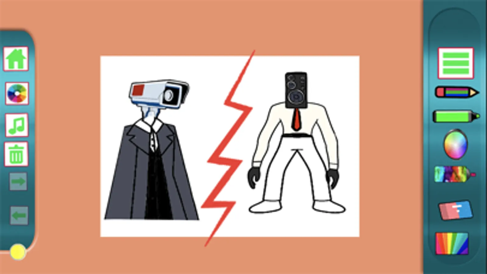 Welcome to Cameraman Toilet Colorin Art game where you can have the chance to learn How to draw and color all the adventurer Cameraman pictures, train your brain to have skills of drawing and coloring in the same time.ENJOY :D