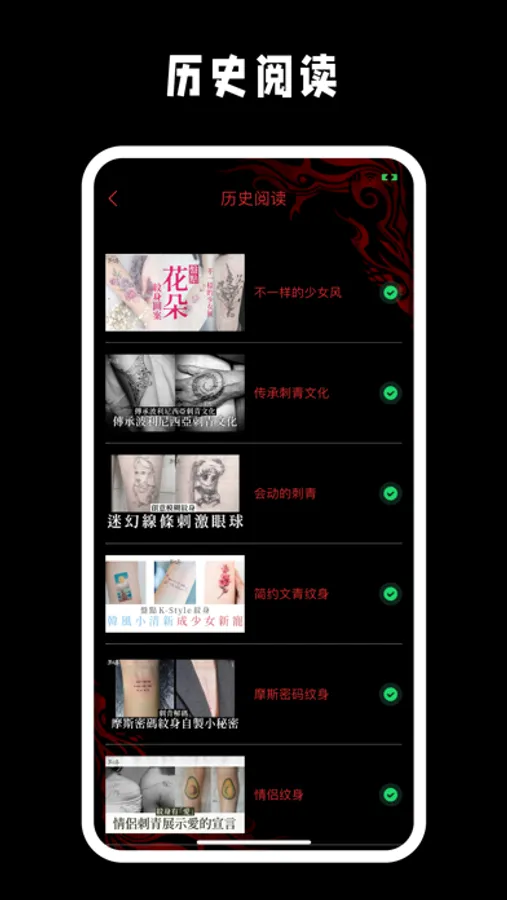 「第二身」是一款提供纹身图案设计、风格推荐和技术指导的app。您可以通过浏览阅读内容中的纹身图案和风格,包括动物、几何、图腾、传统、创意等类型;当然也可以获取到来自专业纹身艺术家的建议和技术指导,了解如何在纹身过程中保持安全和卫生;在记录页面中,可以与其他有相同兴趣的人交流和分享纹身经验、灵感和故事。