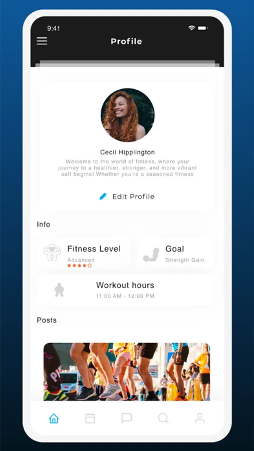 6. Personalized Profile: Build your fitness profile to showcase your journey, interests, and goals. Easily find and connect with others who resonate with your fitness preferences.