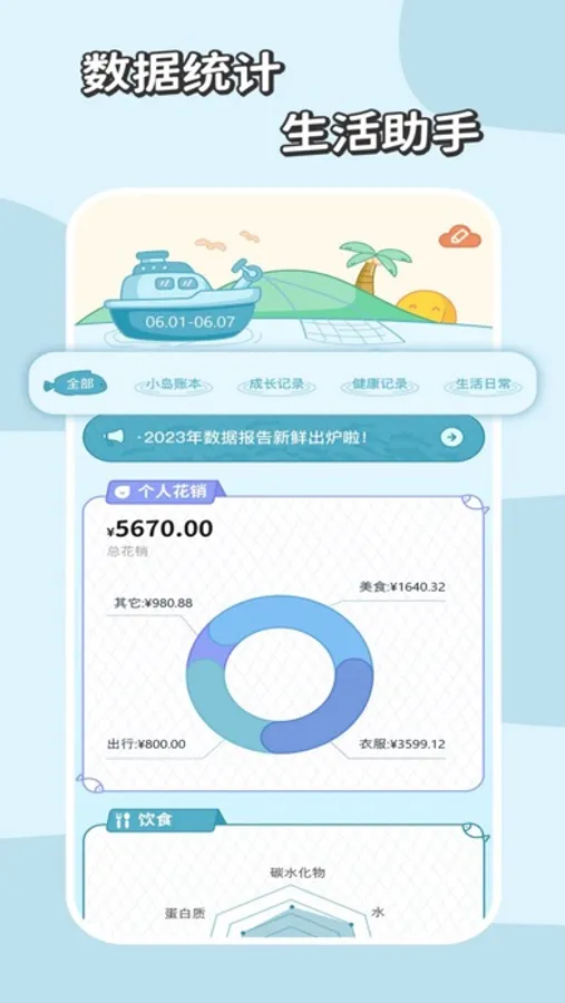 慢岛,是结合了数据记录与手帐制作的分享平台。在这里可以放慢节奏,用自己的方式轻松记录。
