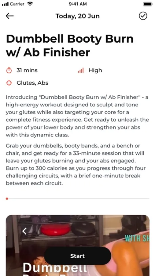 App also uses Apple Health to track energy burned and heart rate during a workout session, if an Apple Watch is used.