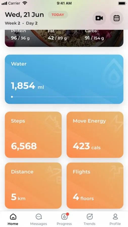 The app integrates with Apple Health to show your daily activity - distance, steps, active energy, and flights to help you better achieve your goals.