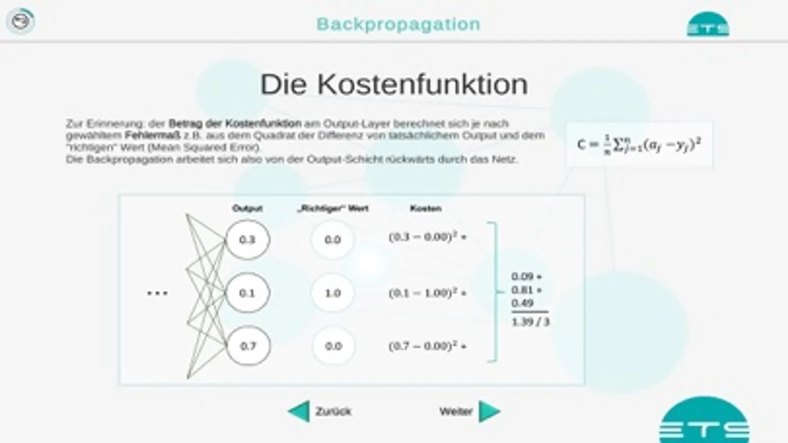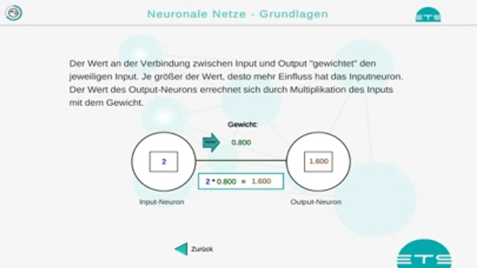 des Kursmodules KI von ETS. Als Anwendung wird auf eine Kamerabasierte Auswertung referenziert.