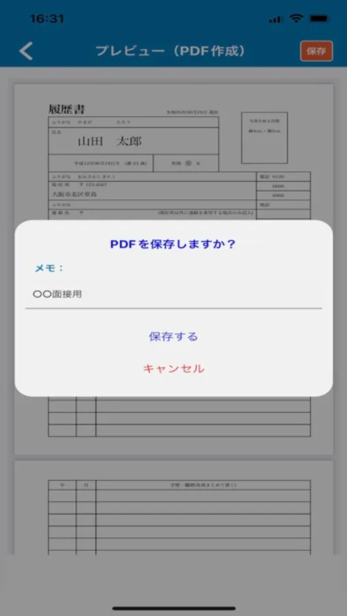 履歴書のPDFで作成する履歴書作成アプリです(無料)。