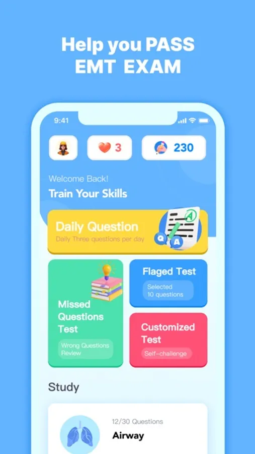 EMT Prep 2023 is the #1 app to help you pass the exam, the choice of thousands of users. Our only goal is to help you pass your exam efficiently and easily, even if it's your first time taking it!