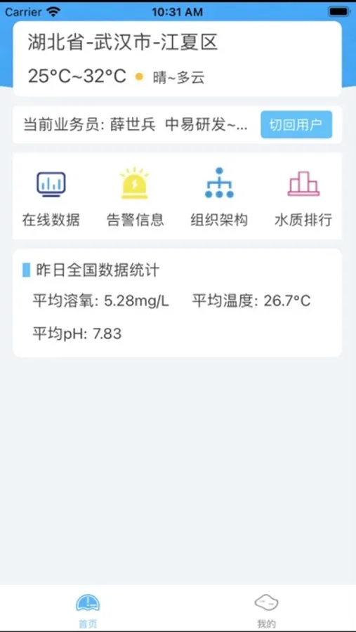 2.首页下面是展示当前业务员账号下展示的水质数据统计;