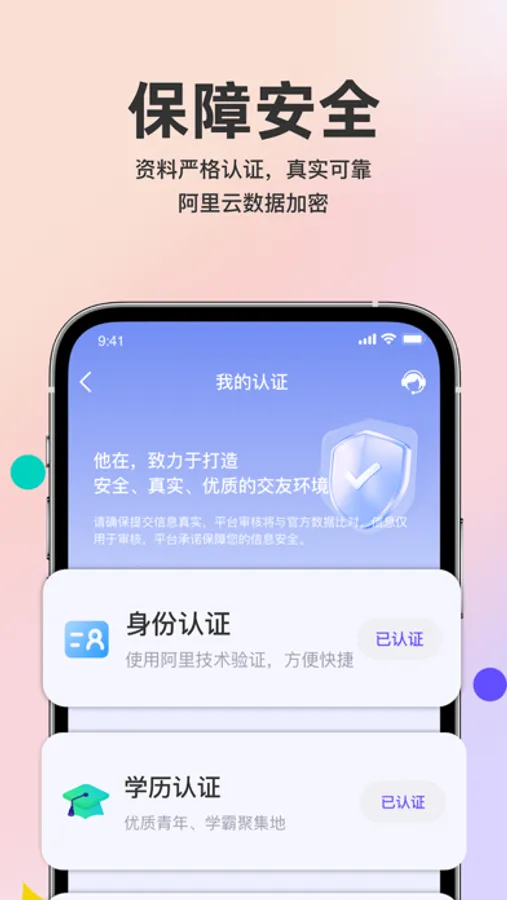 【身份认证】全部用户都经过实名和真人的认证审核,学历/职业/收入/车辆等资料详细又真实;