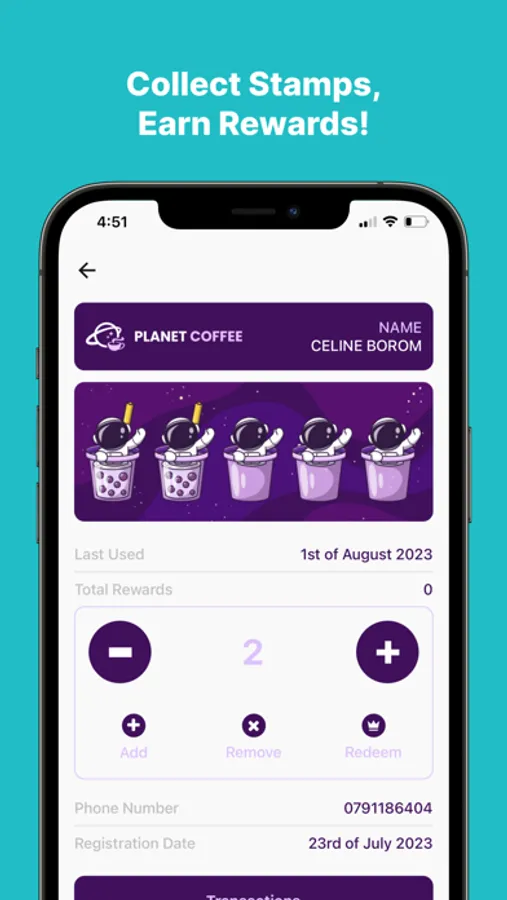 The employee side of the kiosk allows staff to easily stamp and update loyalty cards for customers. With a few simple clicks, employees can track customer purchases and loyalty points, creating a rewarding experience for loyal patrons.