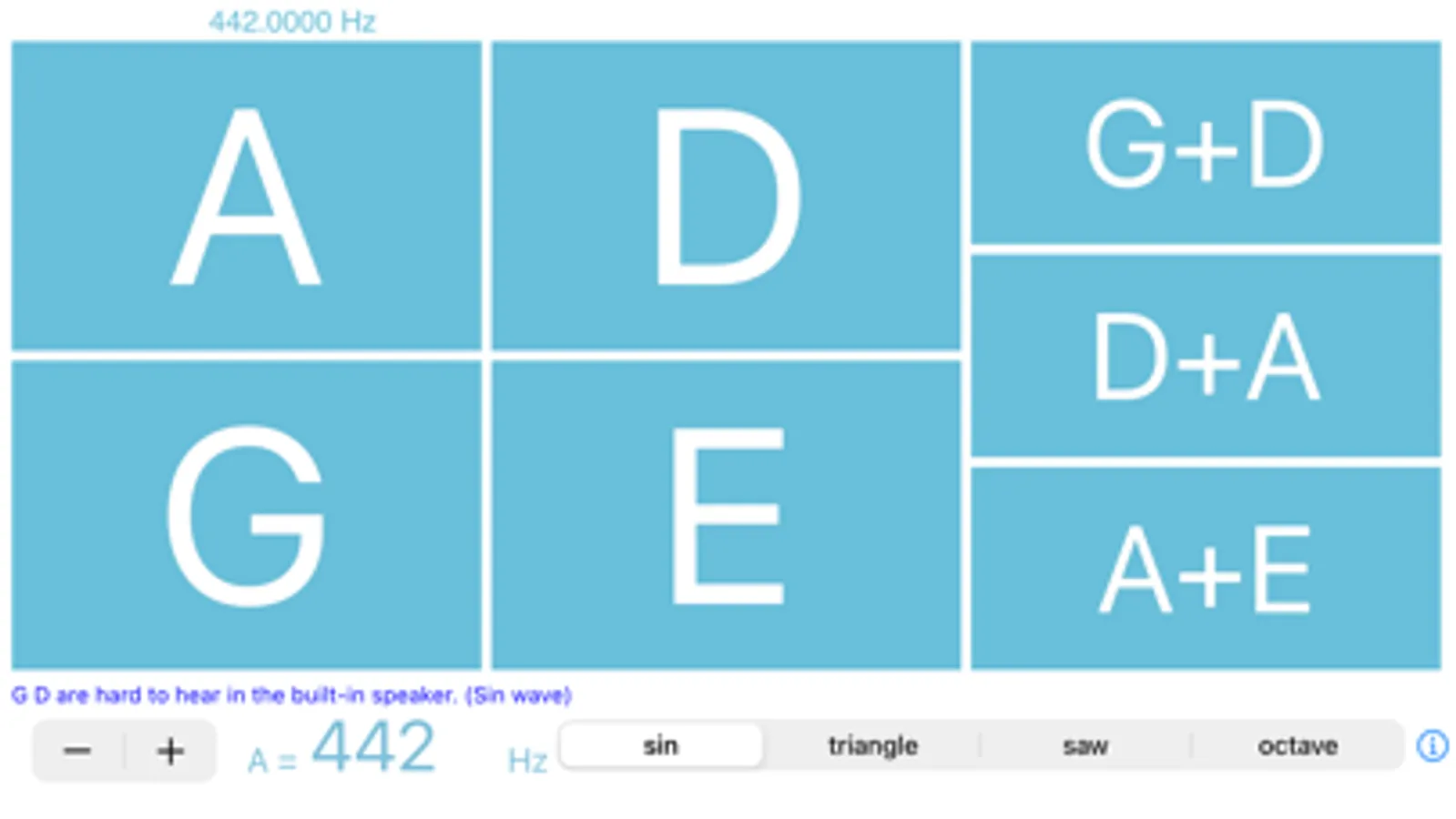 純粋なサイン波は他の周波数が含まれていないため、初心者でもずれた重音の音のうねりが感じられ、うまく調弦できると思います。