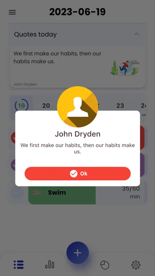Habitis also applies a lot of habits and performance theories in each interface to help you build, set and maintain motivation until scientifically accomplished. Let's complete your goals from big to small from small habits that are created and maintained daily: