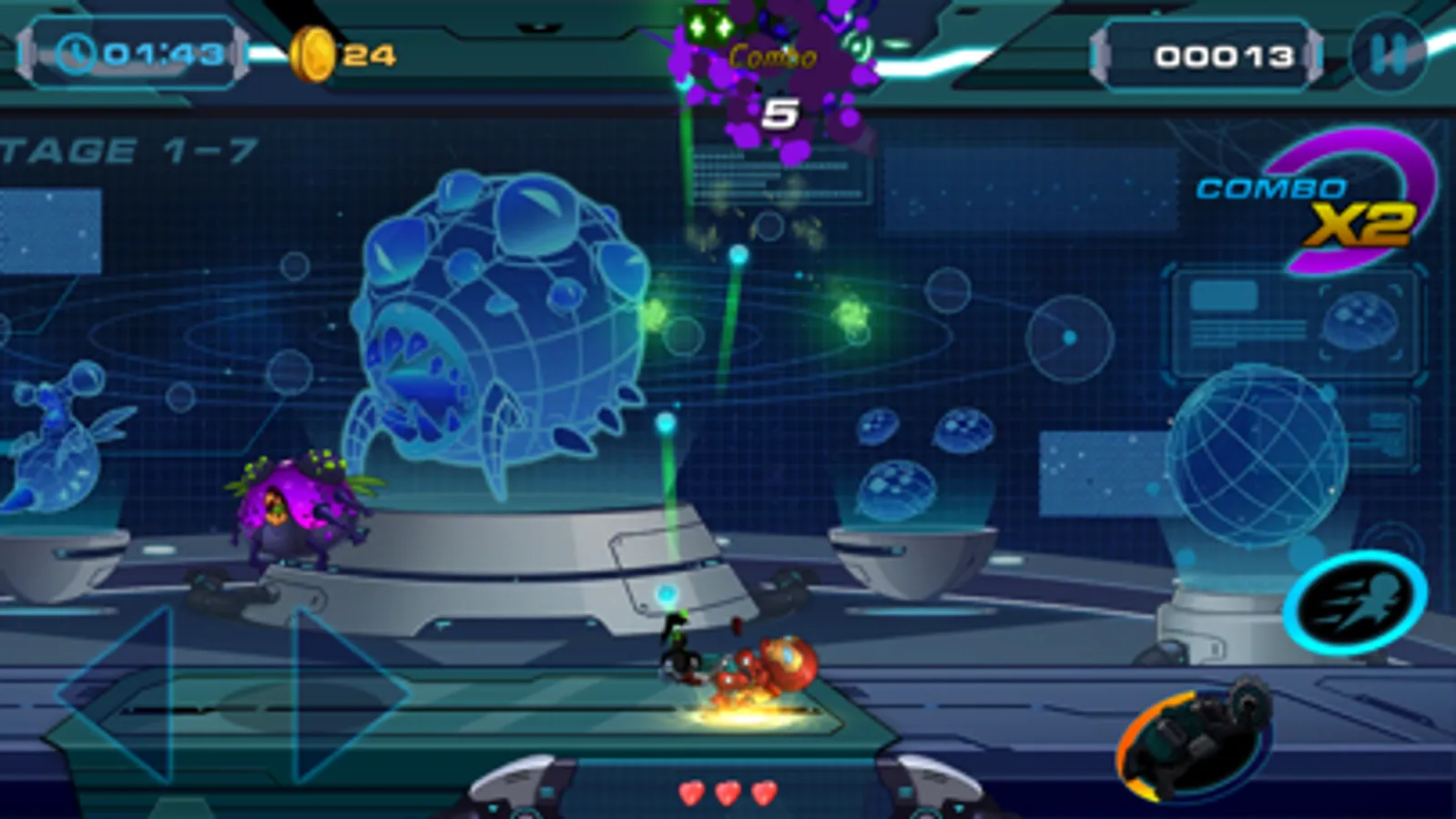 - The core mechanic of the game is vertical shooting. Monsters will spawn everywhere and you have to control the metal soldiers to move and avoid them while shooting to kill them.