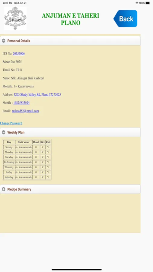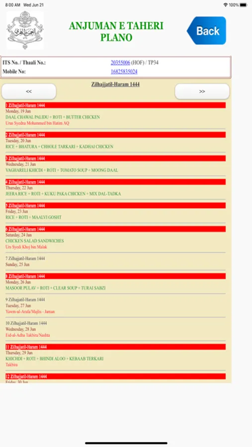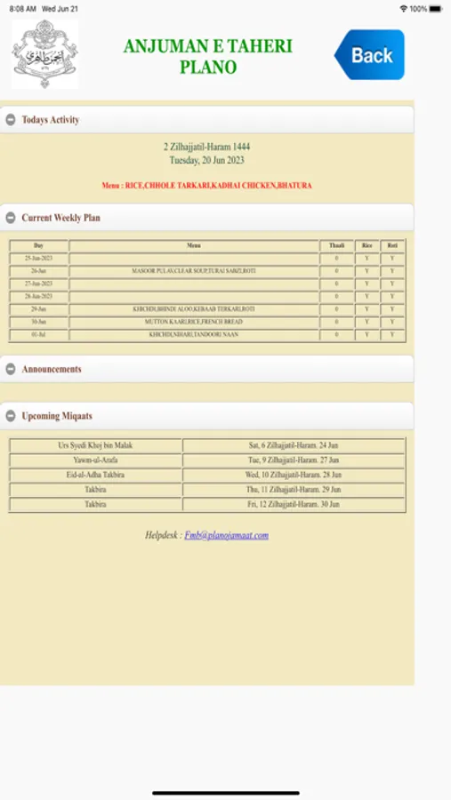 App Features: Jamaat Announcements/Communication, FAIZ UL MAWAID IL-BURHANIYAH Management, Weekly Plan, Monthly Menu & Thaali Revision, Stop Thaali Request