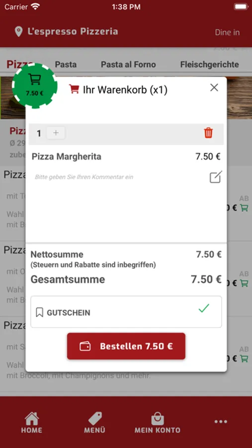 Herzlich Willkomen bei Lespresso Eschweiler in Eschweiler. Wir bedienen unsere Kunden mit Pizza, Pasta, Insalata, Antipasti Speisen und machen das seit mehreren Jahren aus Leidenschaft. Wir freuen uns immer wieder neue Kunden unsere Herkunft näher zubringen und möchten ihnen die Möglichkeit geben, ihre Bestellung unkompliziert und total einfach abzugeben. Aus diesem Grund, möchte wir ihnen unsere neue App und unseren Online Shop vorstellen, mit dem Sie problemlos über Paypal, Bar und Kreditkarte zahlen können.