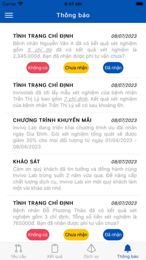 Ứng dụng dành cho đối tác của phòng xét nghiệm