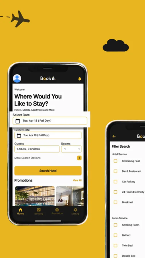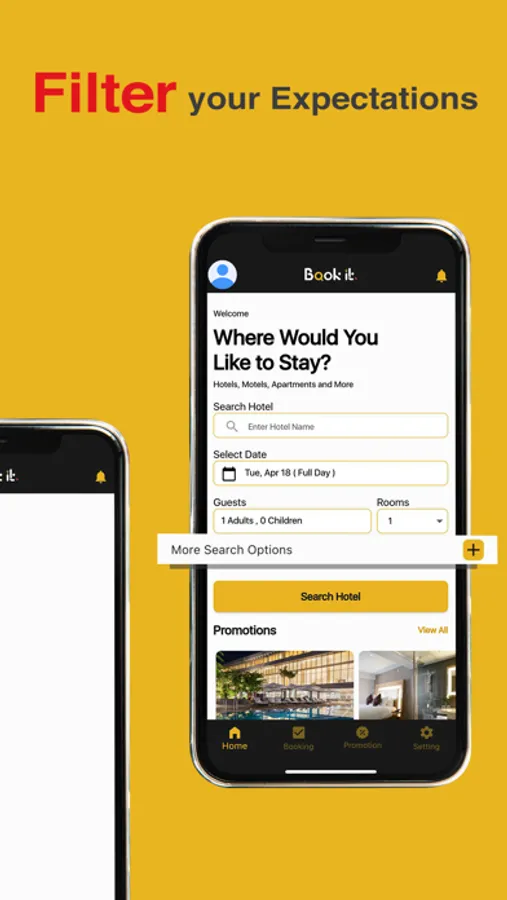 "BOOK IT" features a range of filters and sorting options to help you find the perfect hotel. Looking for a specific location? Use our map feature to browse hotels in your desired area. Want to stay within a certain price range? Sort hotels by price to find the best deals. You can also filter hotels based on amenities, such as Wi-Fi, a swimming pool, a fitness center, and more.