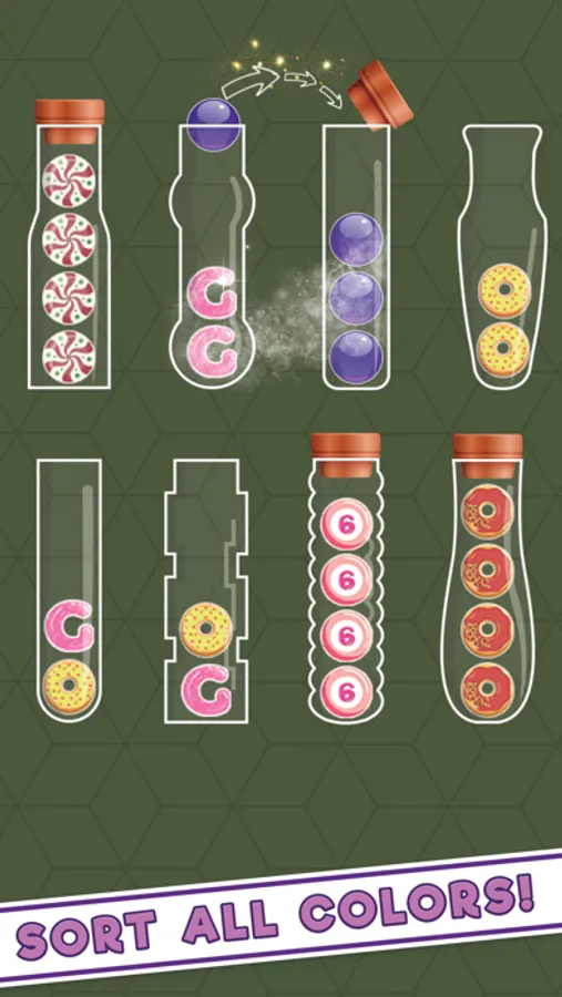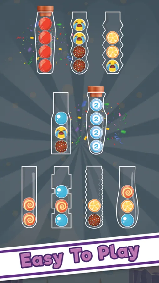 Simple & Addictive free puzzle game for you to enjoy multiples level with increasing difficulties and also have different themes , multiple balls, alphabets , candy, classic buttons, donuts, marble shapes, emoji, numbers with game sorting balls in tubes