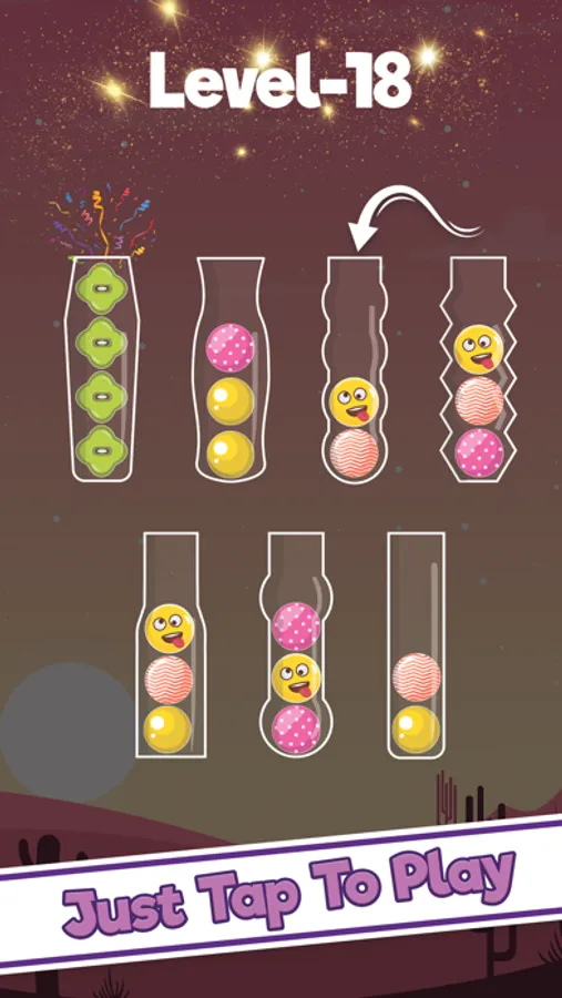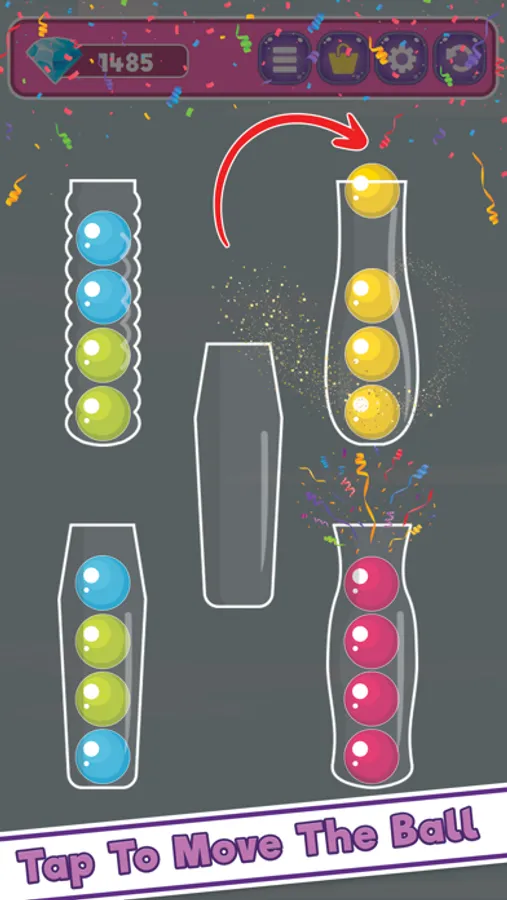 → now tap to another tube having same colour ball on top or empty tube to move ball