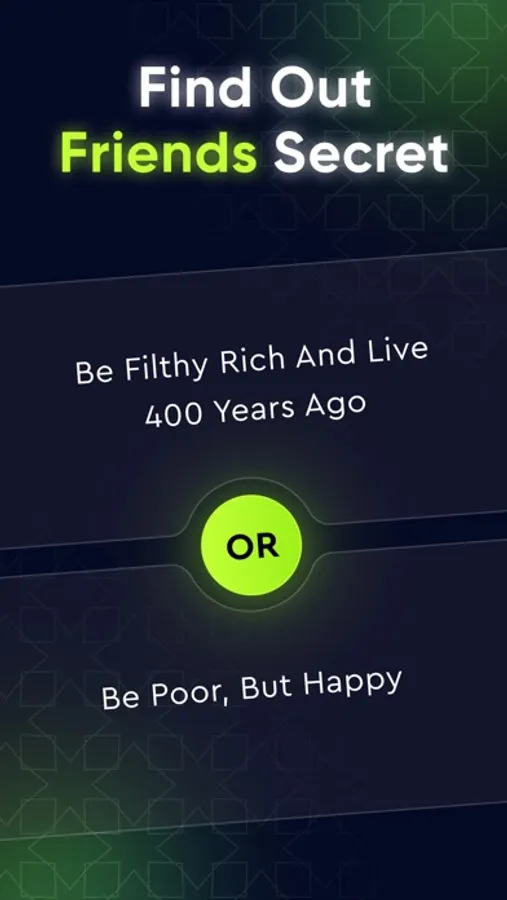 Designed for players of all ages our "Would You Rather game?" will constantly put you at the crossroads of two intriguing options. Each question will make you think, laugh, and possibly even squirm as you weigh your options. What are you waiting for? Install now! Say bye to boring times!
