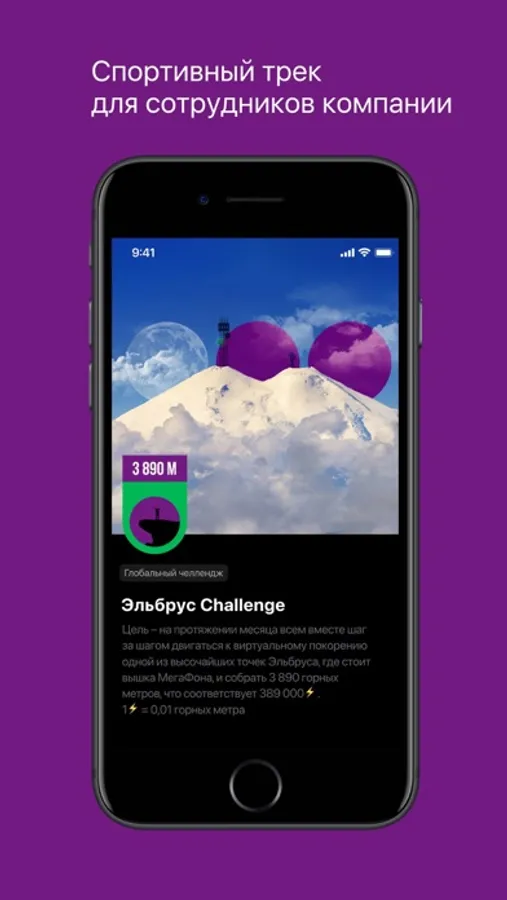 Участвуй в глобальном челлендже. Вместе мы покорим Эльбрус. Именно здесь расположена самая высокая базовая станция во всей Восточной Европе – базовая станция МегаФона! Она построена на высоте 3890 метров. Именно это расстояние нам и предстоит преодолеть. Для этого будем конвертировать заряды в метры. Как? Расскажем в рамках самого челленджа.