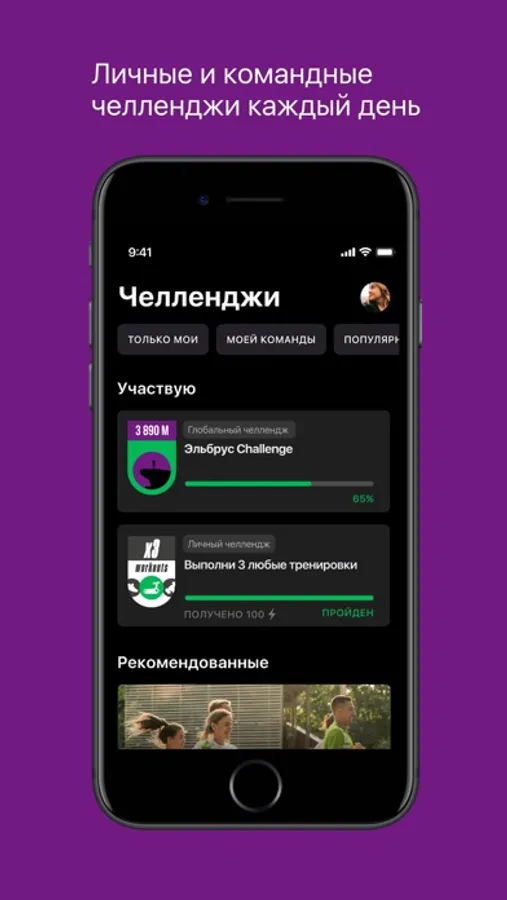 Принимай личные вызовы и добивайся побед. Это могут быть активности и тренировки из нашего приложения, а могут быть твои собственные активности – например, поход в бассейн или занятие по танцам.
