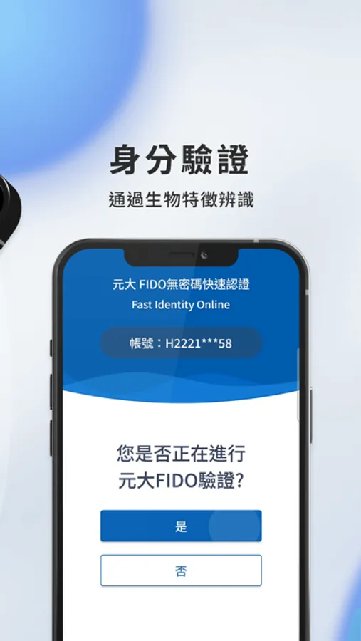 元大 FIDO 是「元大銀行與元大金控集團旗下子公司(元大證券、元大人壽、元大期貨、元大投信)」依照國際 FIDO 聯盟驗證標準所規劃的身份驗證服務。