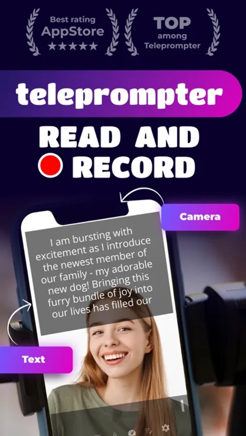 With this teleprompter your gadget will become an indispensable assistant during public speeches! Edit your records from the app. Trim, scale video, add stickers, text, apply cool effects and more.