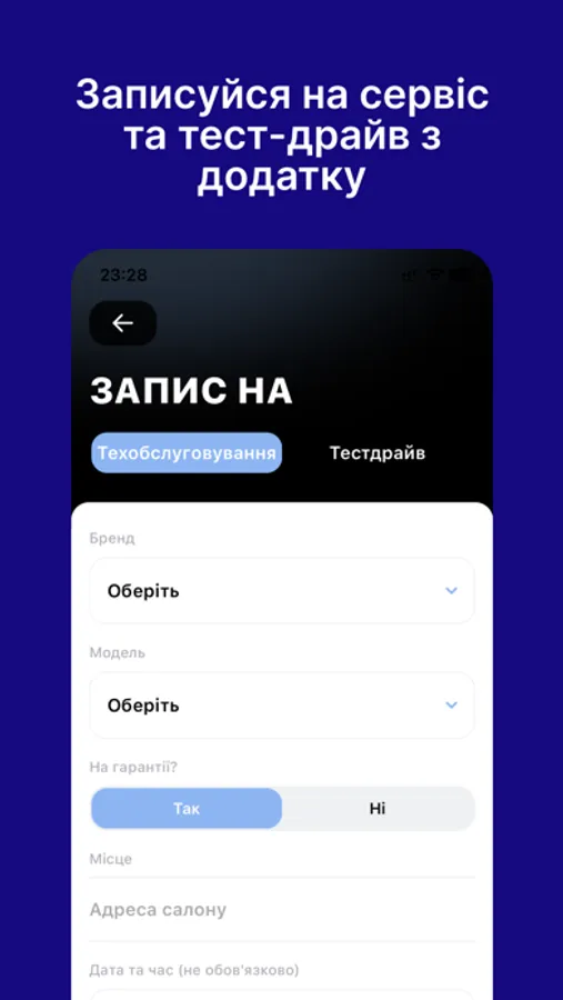 Він допоможе записатись на сервіс та тест-драйв, перевірити кількість бонусних балів та історію сервісного обслуговування, а також залишити відгук!