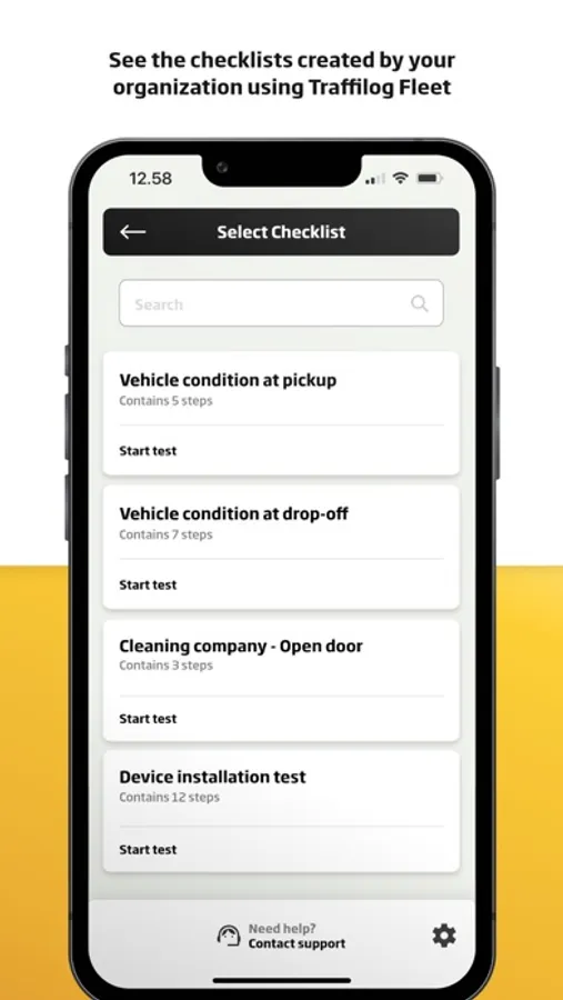 The checklists are created by your organization. Access to the checklist is given afterwards to members and partners of the organization. The types of steps within the checklist: