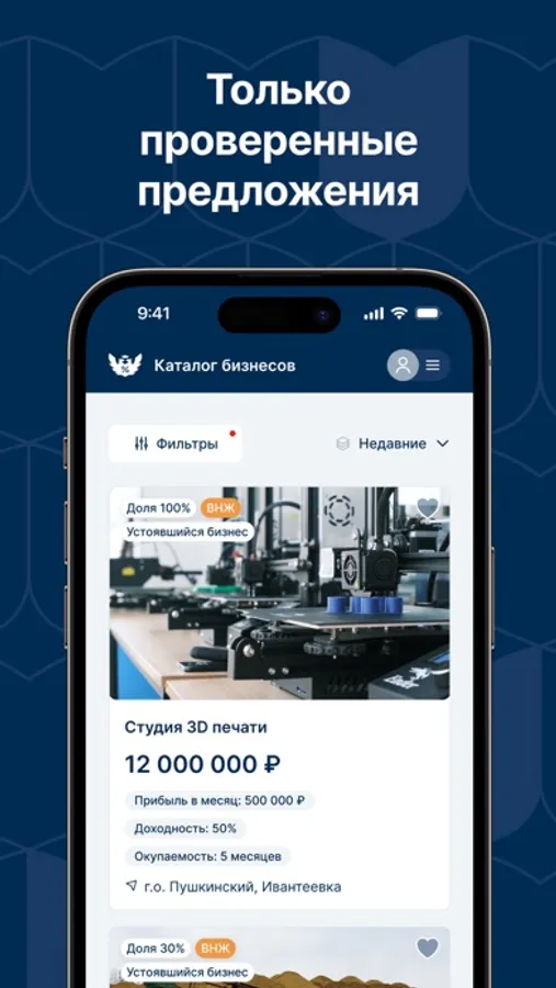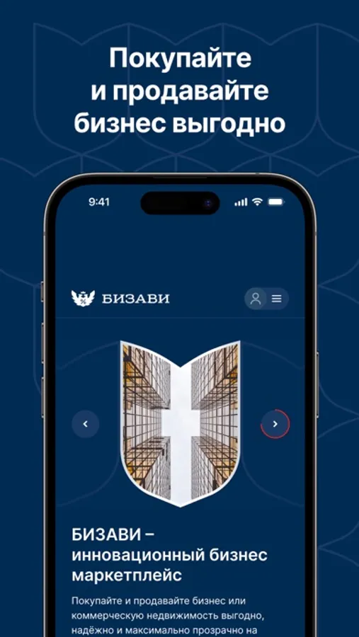 BIZAVI is an innovative platform for making safe, profitable, prompt sale and purchase of ready-made business and real estate in the Russian Federation and other countries. If you're looking for a reliable partner, you've got one right at your fingertips! Download the app and enjoy all the benefits of BIZAVI.