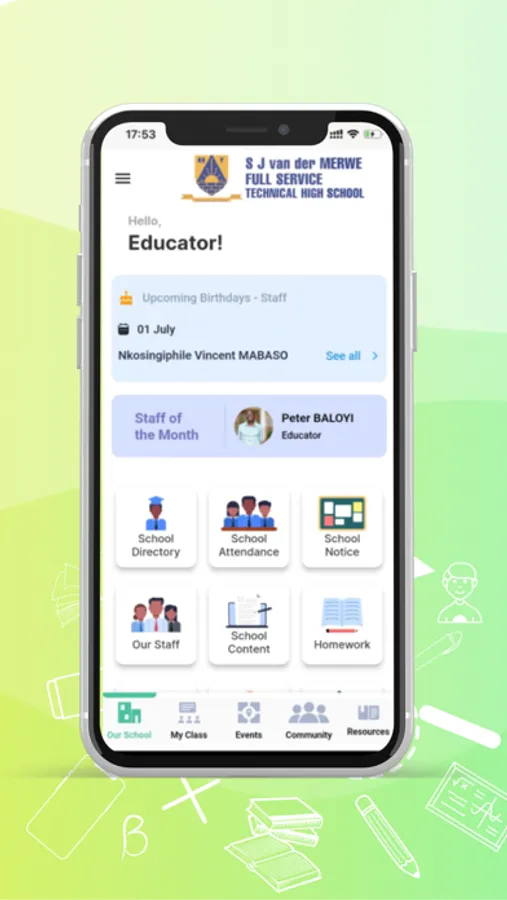 S J Van Der Merwe Full Service Technical High school app is a next-generation, cloud-based, secure, enterprise platform with advanced features to promote and digitally transform the Education ecosystem through the use of digital technology.