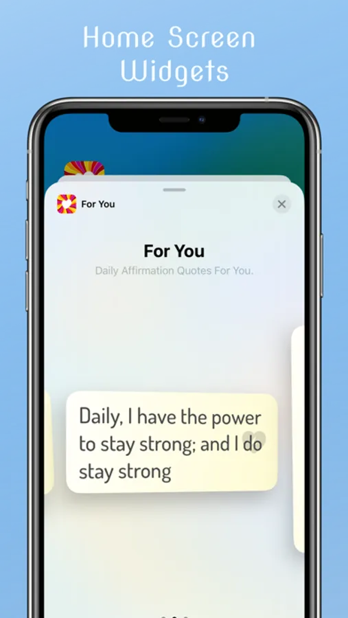 Experience a revolutionary way to integrate affirmations into your daily routine with our innovative widgets. Place an affirmation quote right on your home screen, serving as a constant reminder of your inner strength and resilience. Let the power of words uplift your spirit and keep you focused on your goals, no matter where you are.
