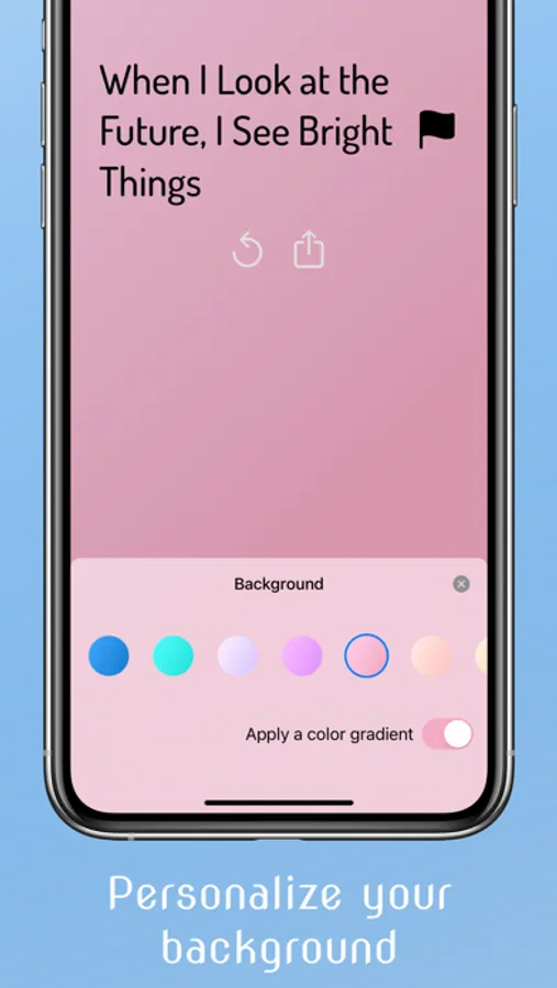 Tailor your affirmation experience to suit your preferences with For You's customizable features. Define the number of notifications you receive throughout the day, ensuring a steady stream of inspiration to keep you motivated. Personalize your affirmations further by choosing from a variety of font styles, colors, and background options. Make the app truly yours as you infuse it with your unique style and aesthetic.