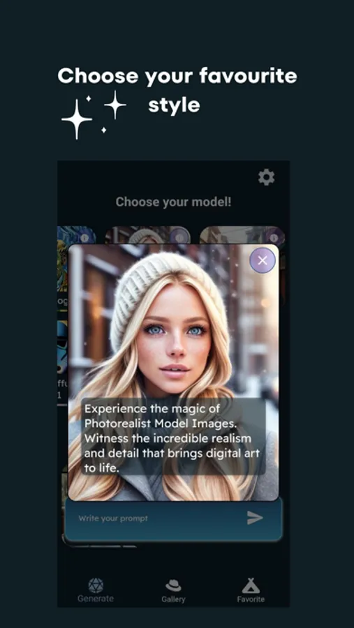 Discover a wide array of artistic styles within AI Image Generator. From classical to contemporary, abstract to hyperrealistic, the app offers a rich selection of styles to suit your preferences and bring your vision to fruition.