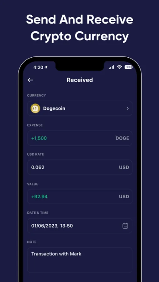 With Analytics Crypto, you can easily input details such as the type of coin, the amount, and any additional notes you want to include. It provides a convenient way to keep track of your Sent and Receive crypto transactions, allowing you to maintain a personal record of your crypto activities.