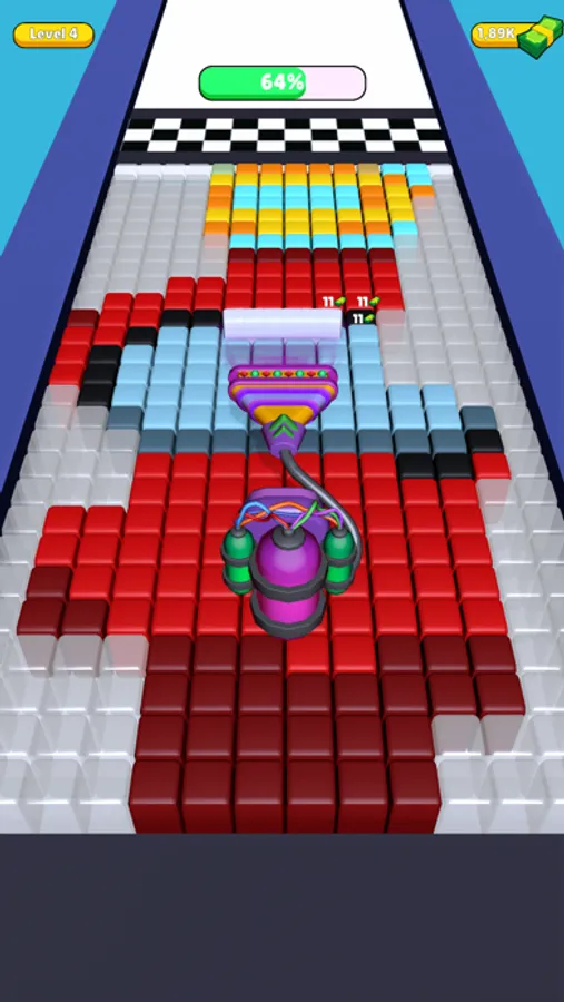 According to the number of cubes collected, the level of the tool that throws cubes increases and the picture is filled more easily.