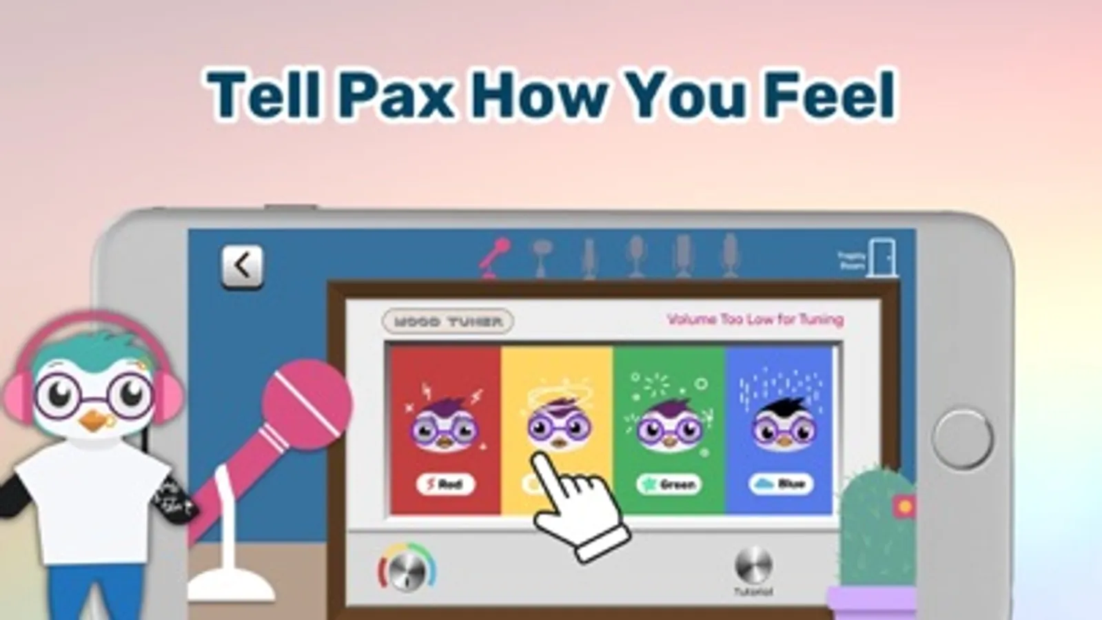 Pax the Penguin keeps learning FUN. By "tuning" your mood, you unlock cool microphones as badges for Pax can use during his podcast about his feelings.
