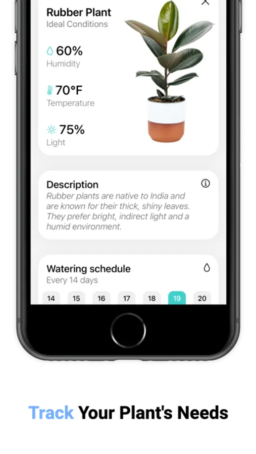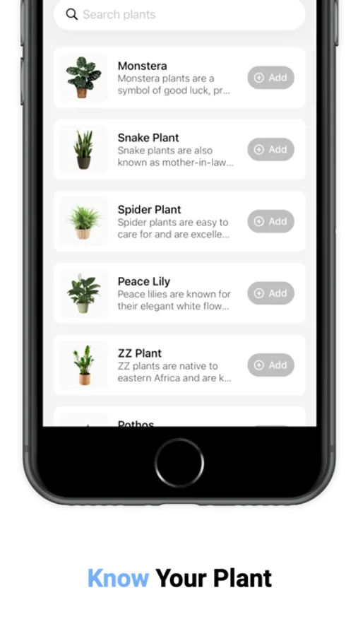 Want to identify a plant? Easy. Use our Plant Identifier feature, powered by the PlantNet API. Simply snap a picture of a plant, and our app will provide you with its name and care needs.