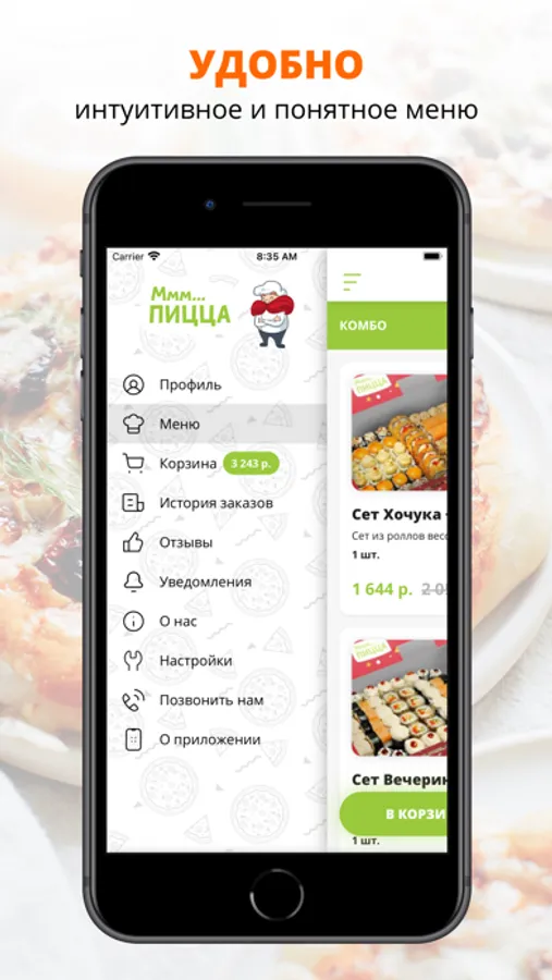 Приложение М Пицца | Сыктывкар — заказывайте доставку до любой лавочки на городском водохранилище! Мы готовим наши блюда из качественных свежих ингредиентов и доставляем еду быстро и бережно.
