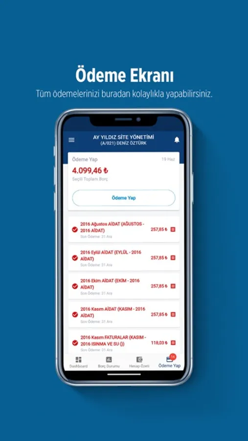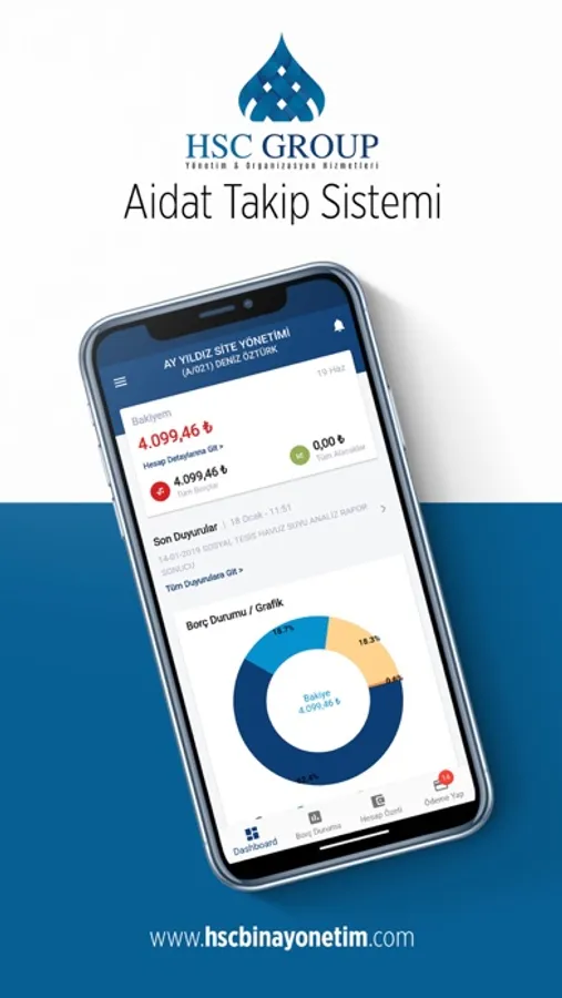 Hsc Group Yönetim Profesyonel Site ve Apartman Yönetimi hizmeti vermekte olduğu site sakinleri için; Aidat vb. borçlarını takip edebilecekleri, kredi kartı ile mevcut borçlarını ödeyebilecekleri mobil uygulamadır. Yönetimcell'in Hsc Group Yönetim için geliştirilmiş uygulamasıdır.