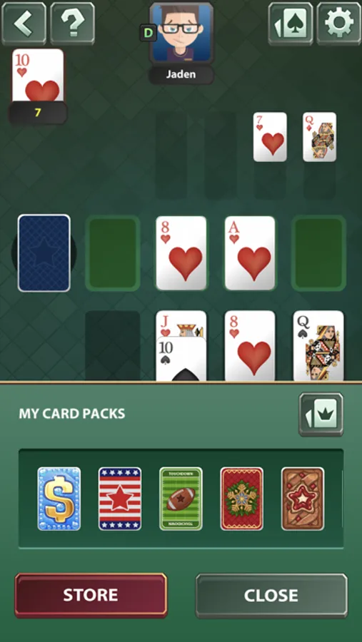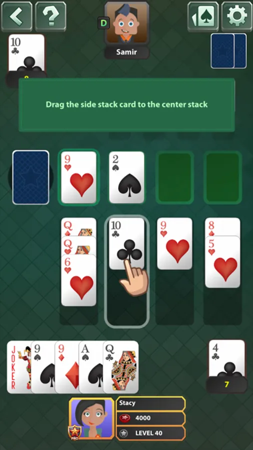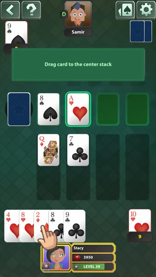 The objective of the game is to get rid of the pay-off pile cards by placing them on the center stack in a sequence Ace,2,3,4,5,6,7,8,9,10,Jack,Queen (irrespective of the suit) with Kings being a wild card.