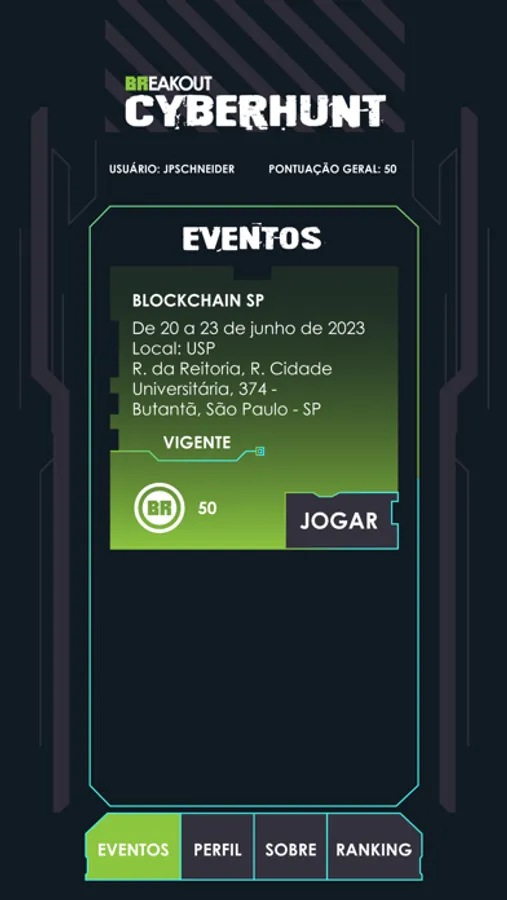 A experiência do jogo acontece de maneira presencial, com interação real com os elementos de exposições que a Breakout participa/realiza no universo de blockchain no Brasil e no Mundo. Iniciando sempre no “QG” da Breakout, isto é, estande ou espaço expositivo da marca, o jogador recebe instruções para iniciar sua jornada. Podemos dizer que cada evento em que participamos funciona como uma fase do jogo. Cada fase possui sua lista de desafios que ocorrem somente nos dias que se acontecem o evento. Blockchain SP 2023 é a primeira fase do jogo e marca o início da aventura de nossos jogadores caçadores cibernéticos na web 3! Entre os dias 20 a 23 de junho no Campus da USP, o jogo Breakout: Cyberhunt será lançado para testar o conhecimento de entusiastas do universo WEB 3.0 e guiá-los em uma experiência presencial gamificada jamais vista.