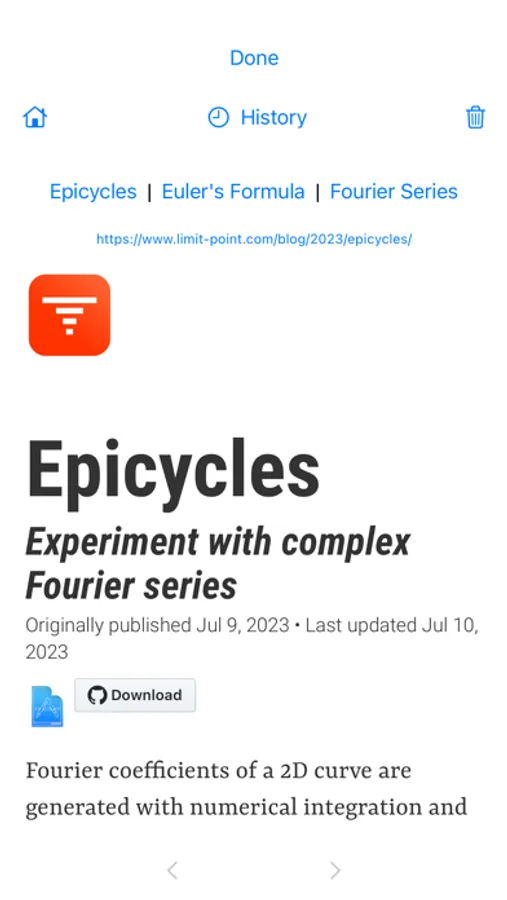 • Info: Display internet resources conveniently in the app about Fourier series, epicycles and Euler’s formula.
