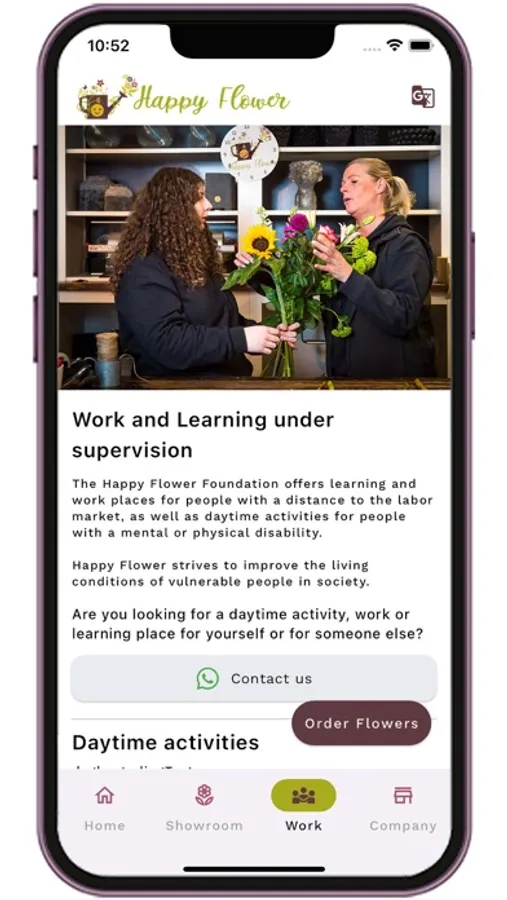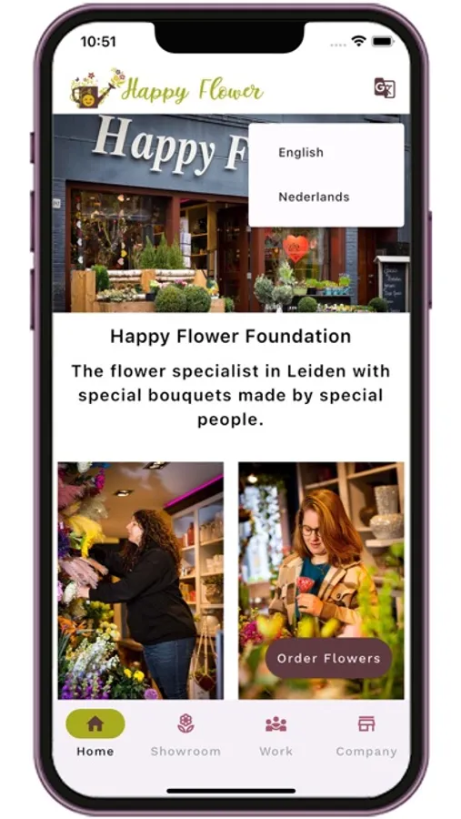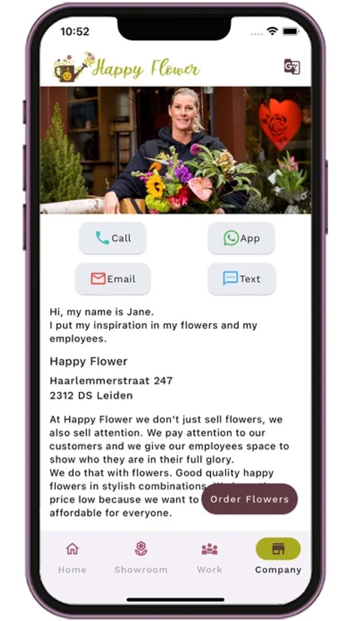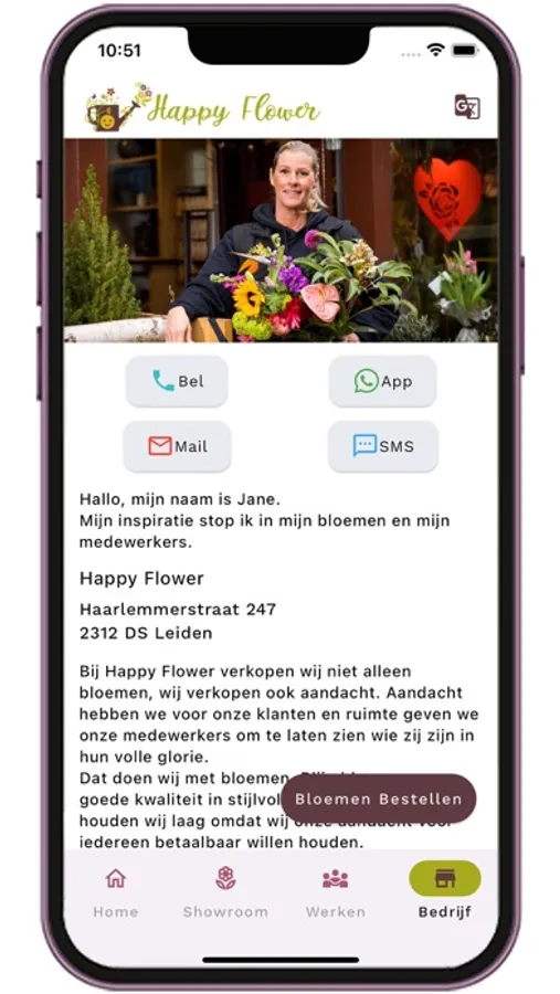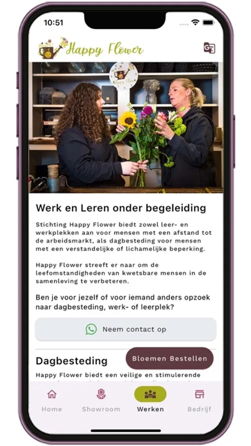 Met de app van Happy Flower kan je makkelijke en snel zien welke bossen bloemen er in hun winkel te kopen zijn. Ook lees je er hoe Happy Flower werkt en hoe ze werk bieden aan speciale mensen met speciaal aandacht.