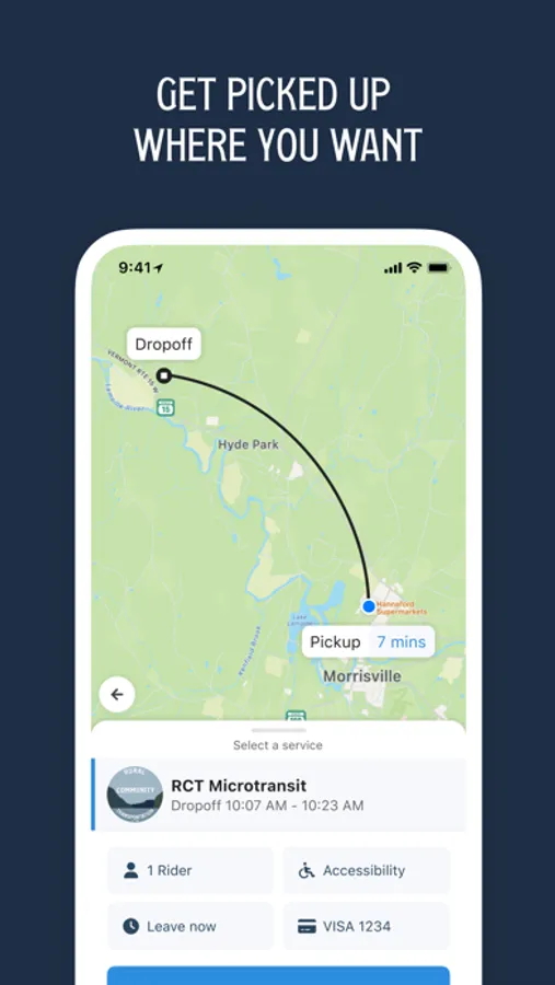 The RCT Microtransit app allows you to travel between Hyde Park and Morrisville at your convenience. Schedule pick up and drop off times that work for you. Service will run from 8 am to 5 pm Monday thru Friday, except holidays.