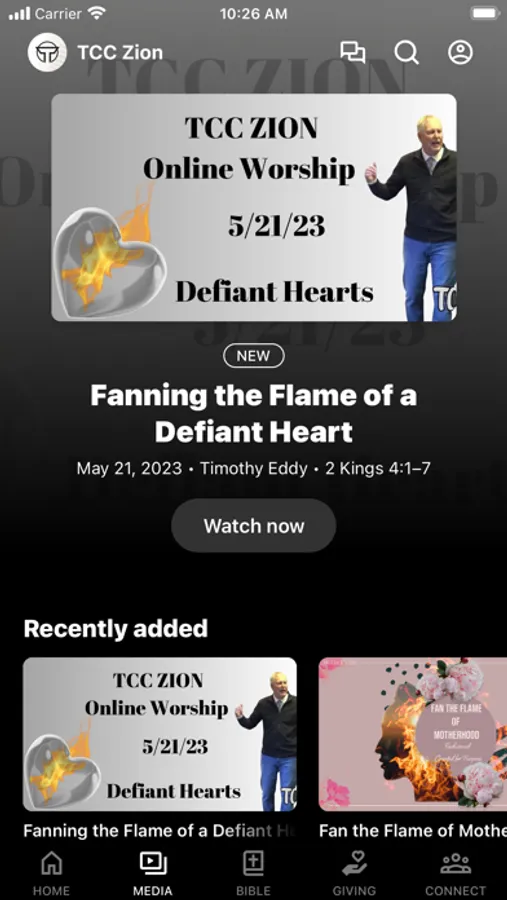 This app will help you stay connected with the day-to-day life of TCC Zion. With this app you can: watch or listen to past messages; stay up to date with push notifications; share your favorite messages via Facebook, or email; and download messages for offline listening.