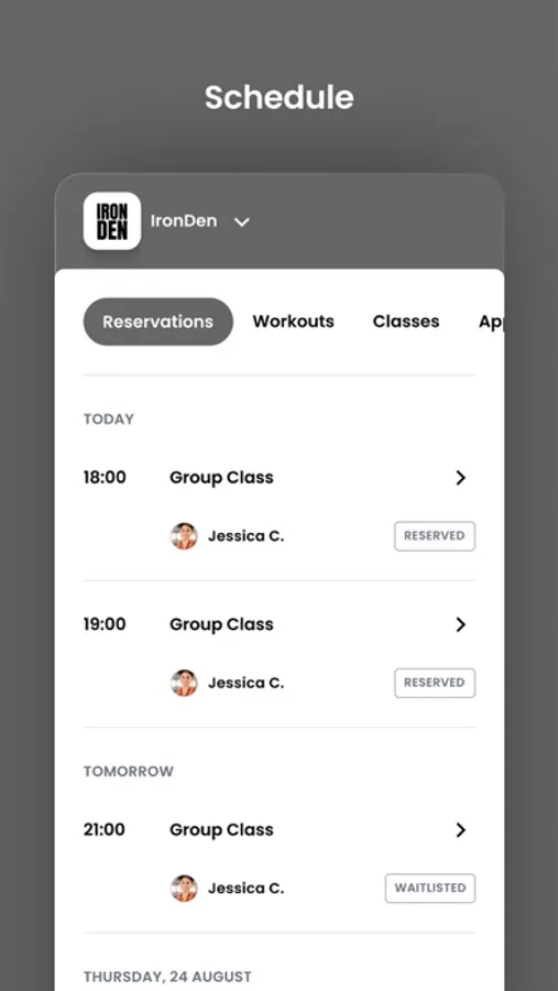 For members of IronDen to reserve their place in a class, sign up for gym events, and general account management like updating headshots and credit card on file.
